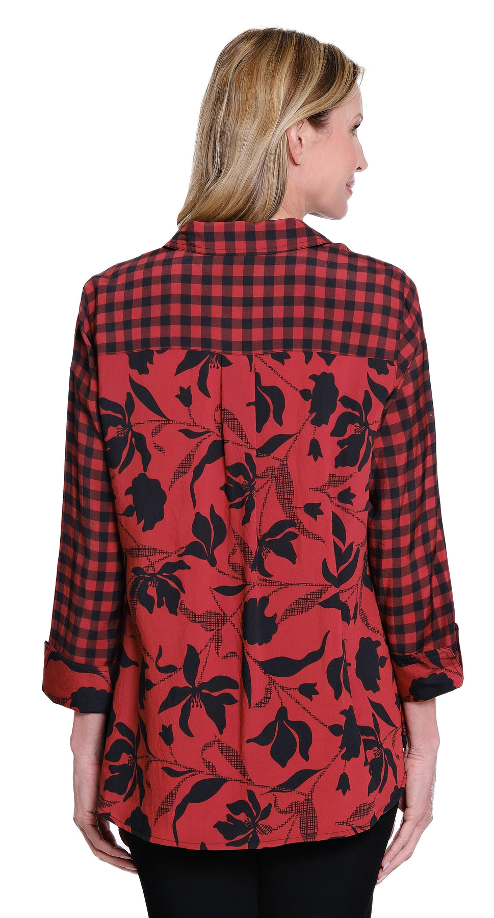 Lightweight and full of personality, this printed woven shirt is a timeless favorite with a modern twist. The button-front design and 3/4 sleeves with turn-up cuffs make it perfect for layering or wearing on its own, offering easy comfort and effortless polish.