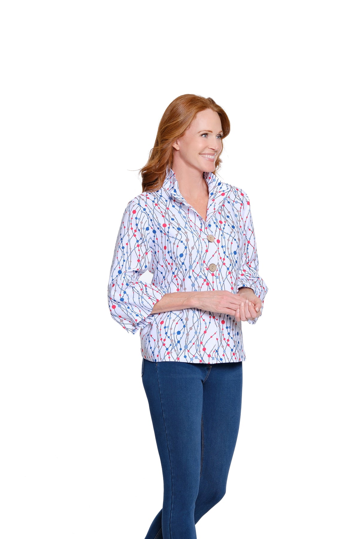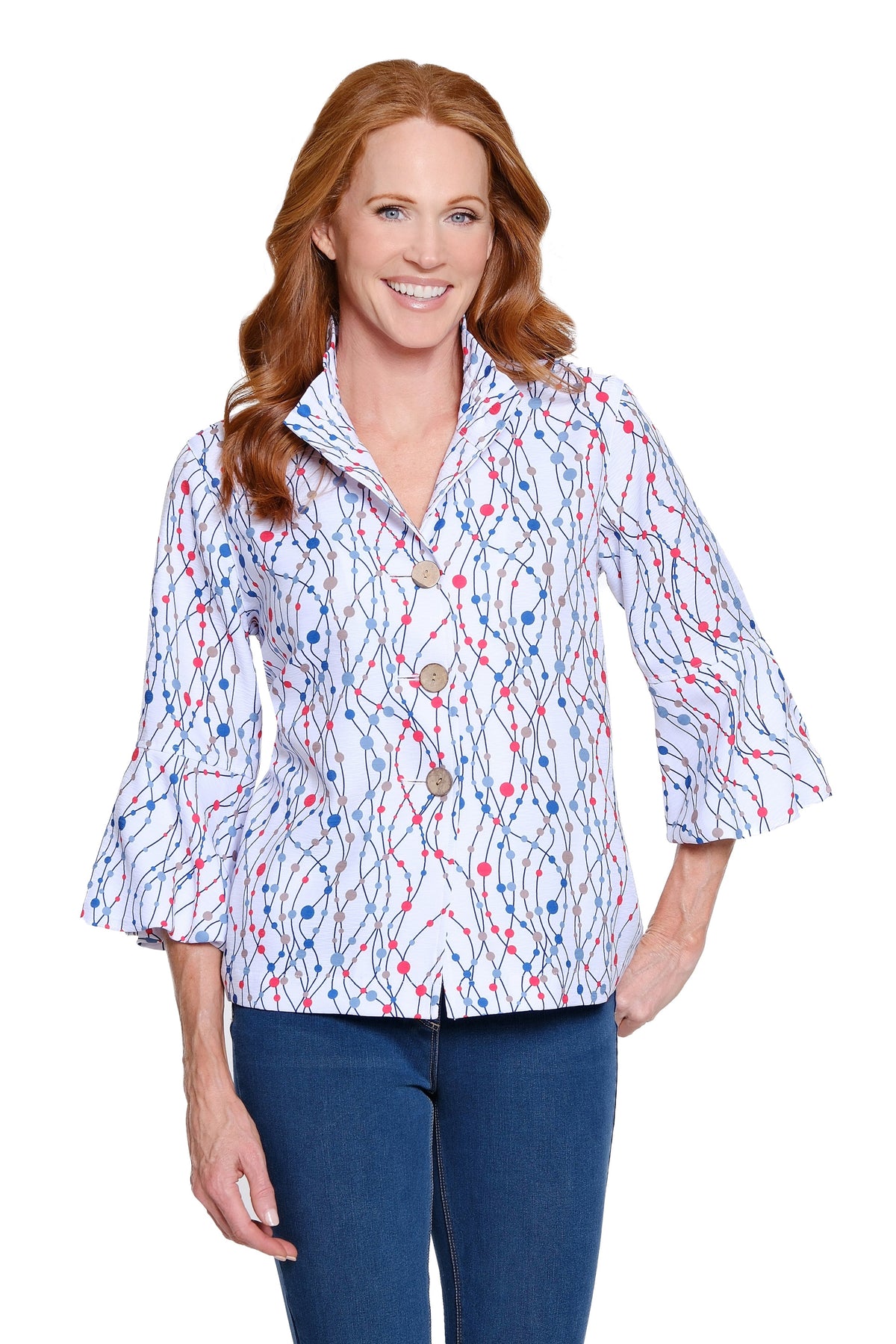 Printed Jacket with Puff Sleeves - Dot Multi