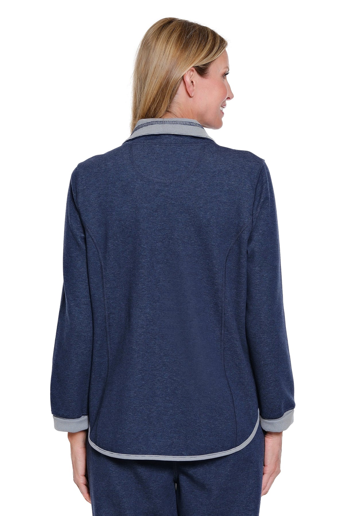 Versatile and effortlessly polished, this reversible knit jacket offers two distinctive looks in one thoughtfully designed layer. A zip-through front and adjustable drawstring collar provide modern structure, while cuffed long sleeves and a kangaroo pocket add relaxed comfort. Crafted in a soft cotton-polyester blend, it’s an easy, everyday piece designed for stylish layering.