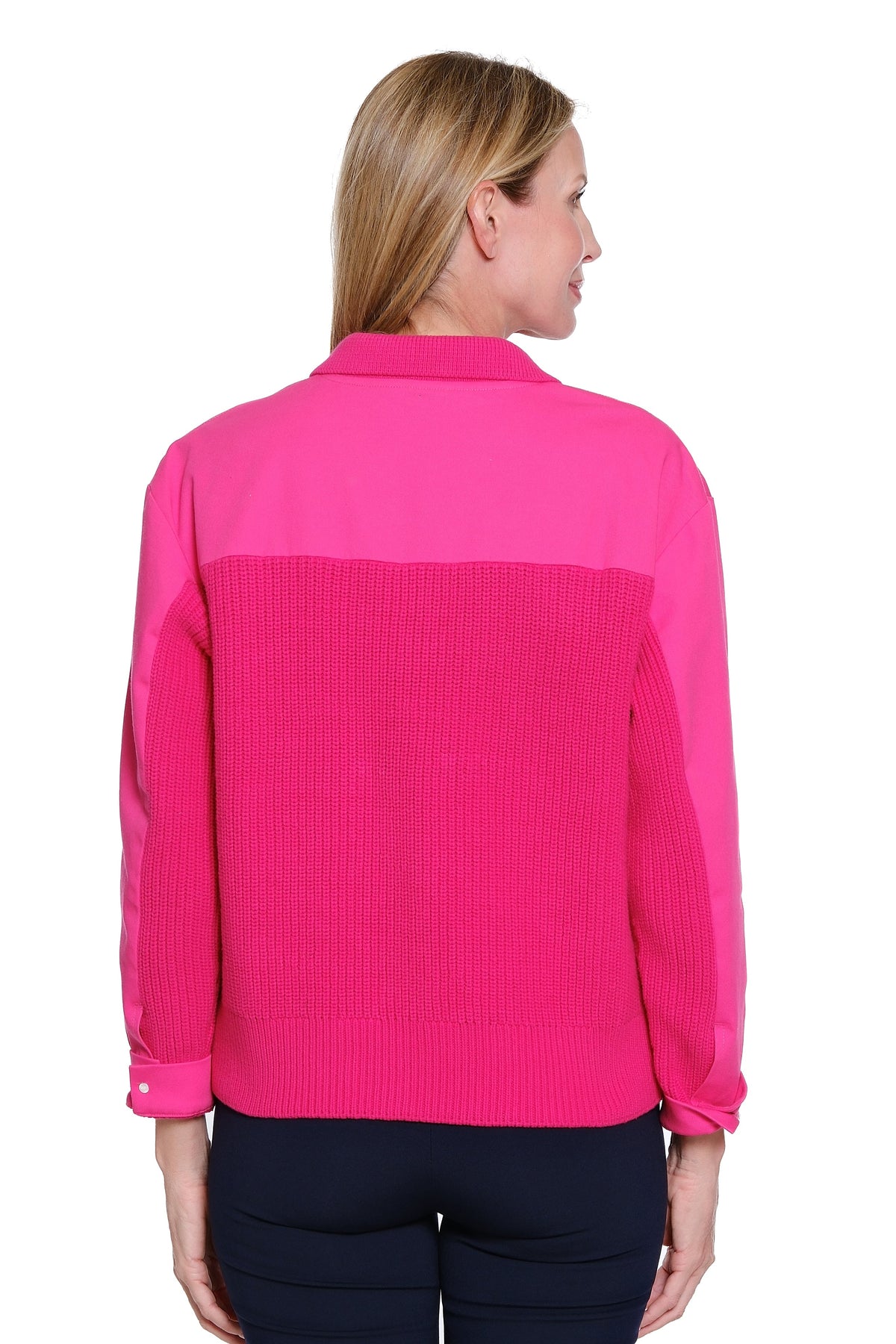Sweater Knit & Denim Jacket - Candy Pink