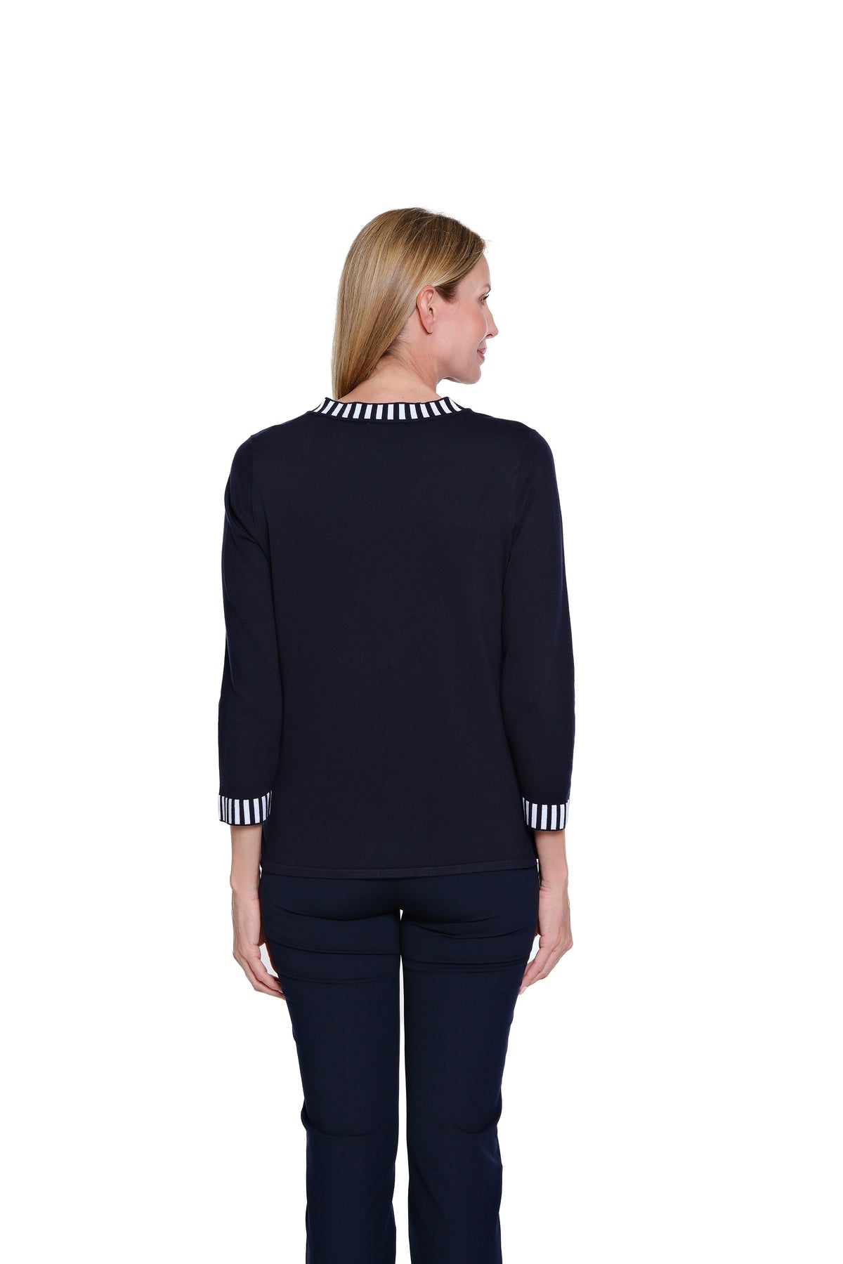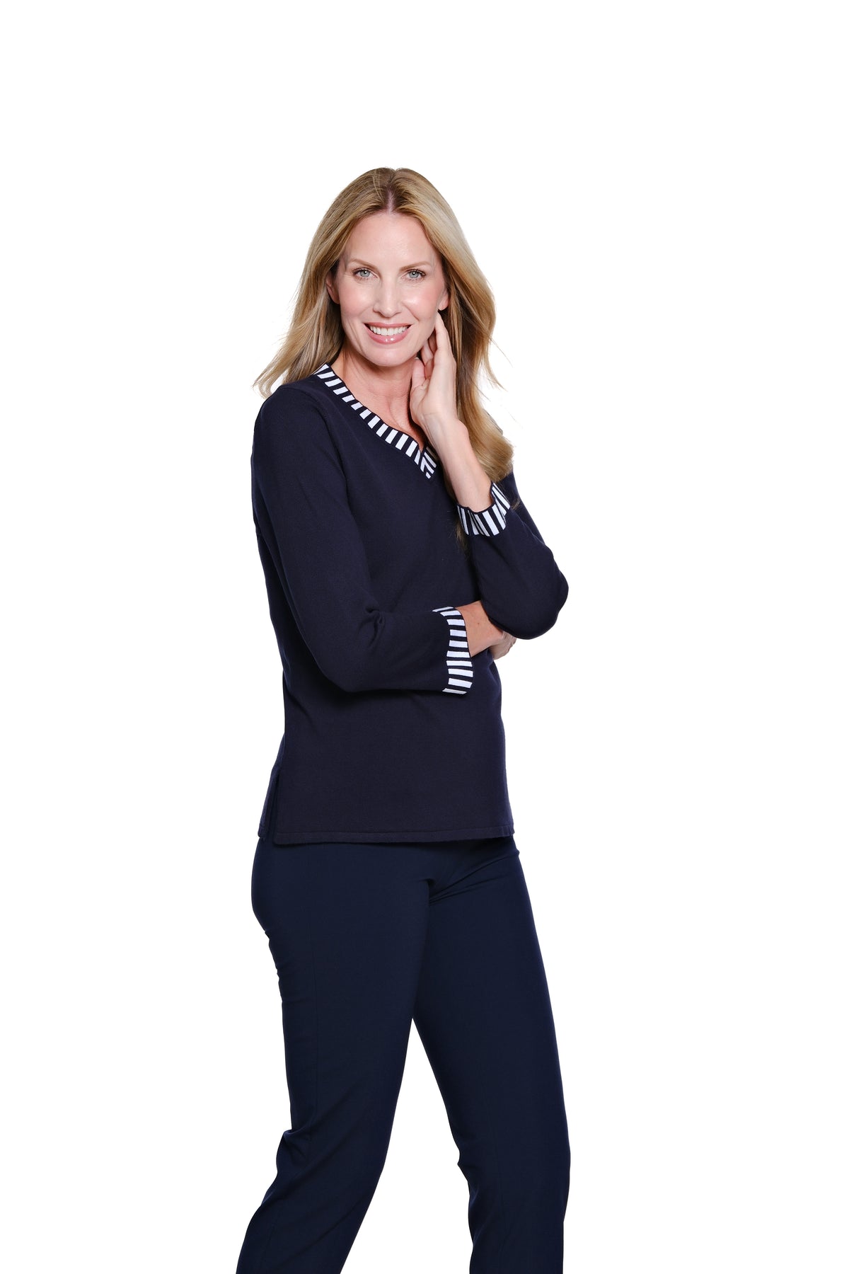 3/4 Sleeve Banded V-Neck Sweater Top - Midnight