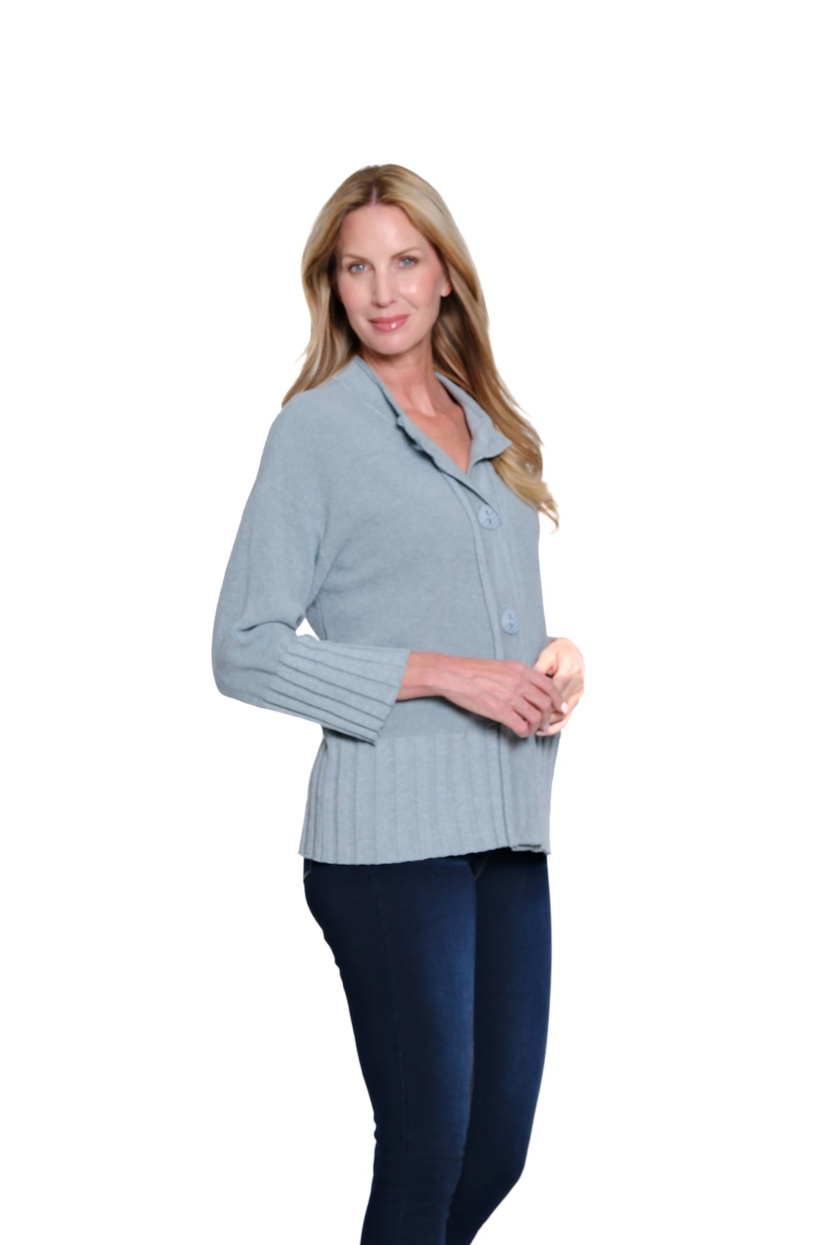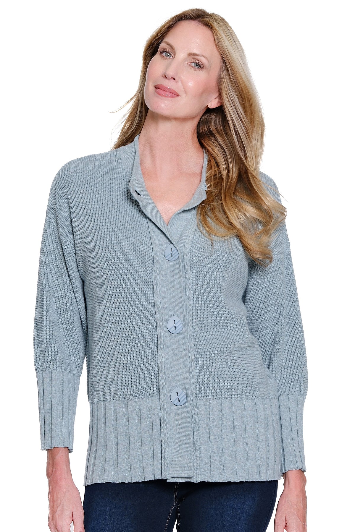 3/4 Sleeve Drop Shoulder Button Front Sweater Cardigan - Missy - Chambray