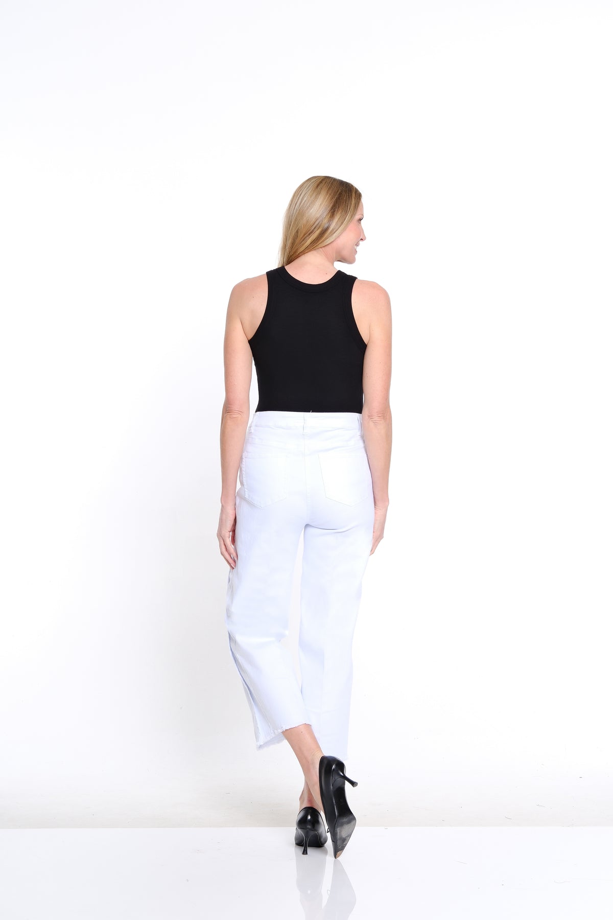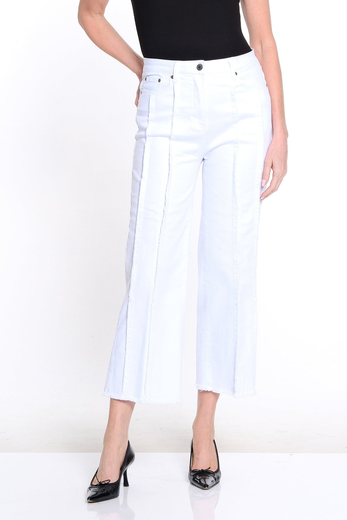 Fringe-Seamed Denim Crop Jean - Petite - White