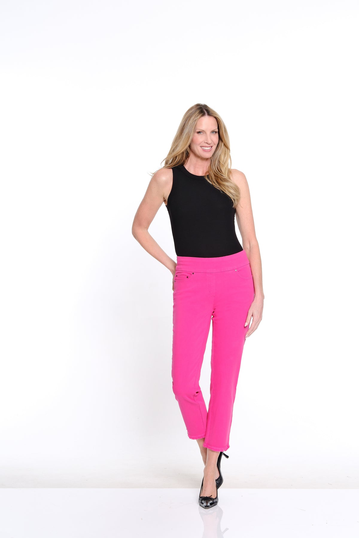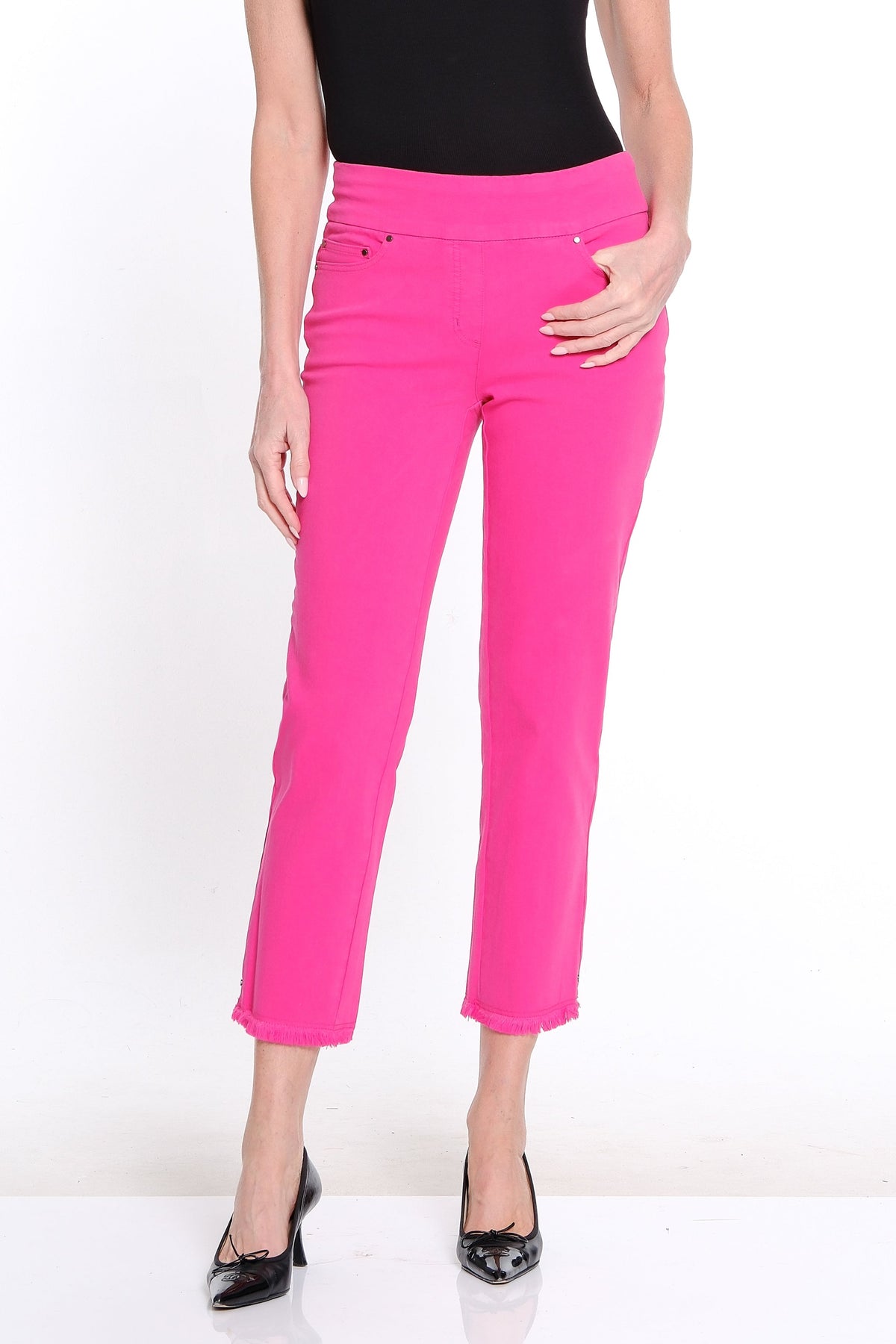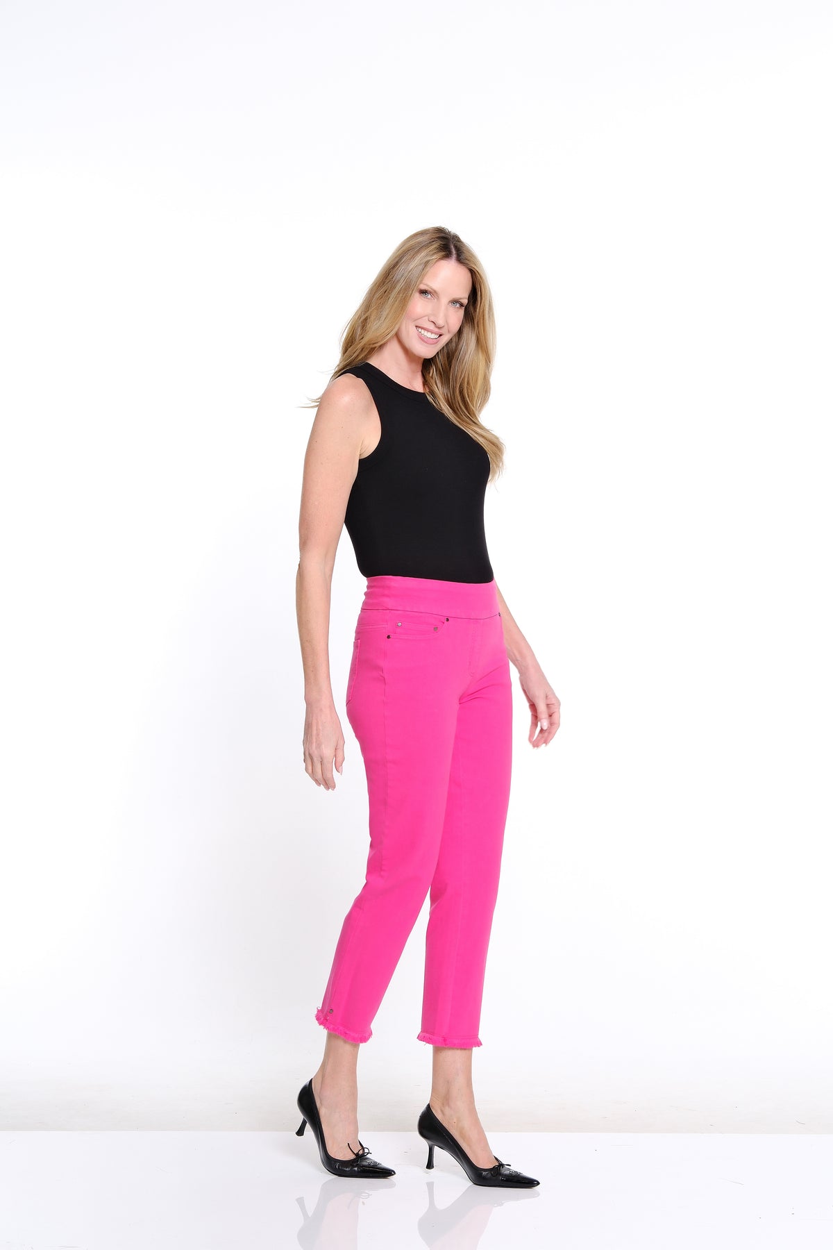 Pull-On Denim Ankle Jean with Fringe Hem - Plus - Candy Pink