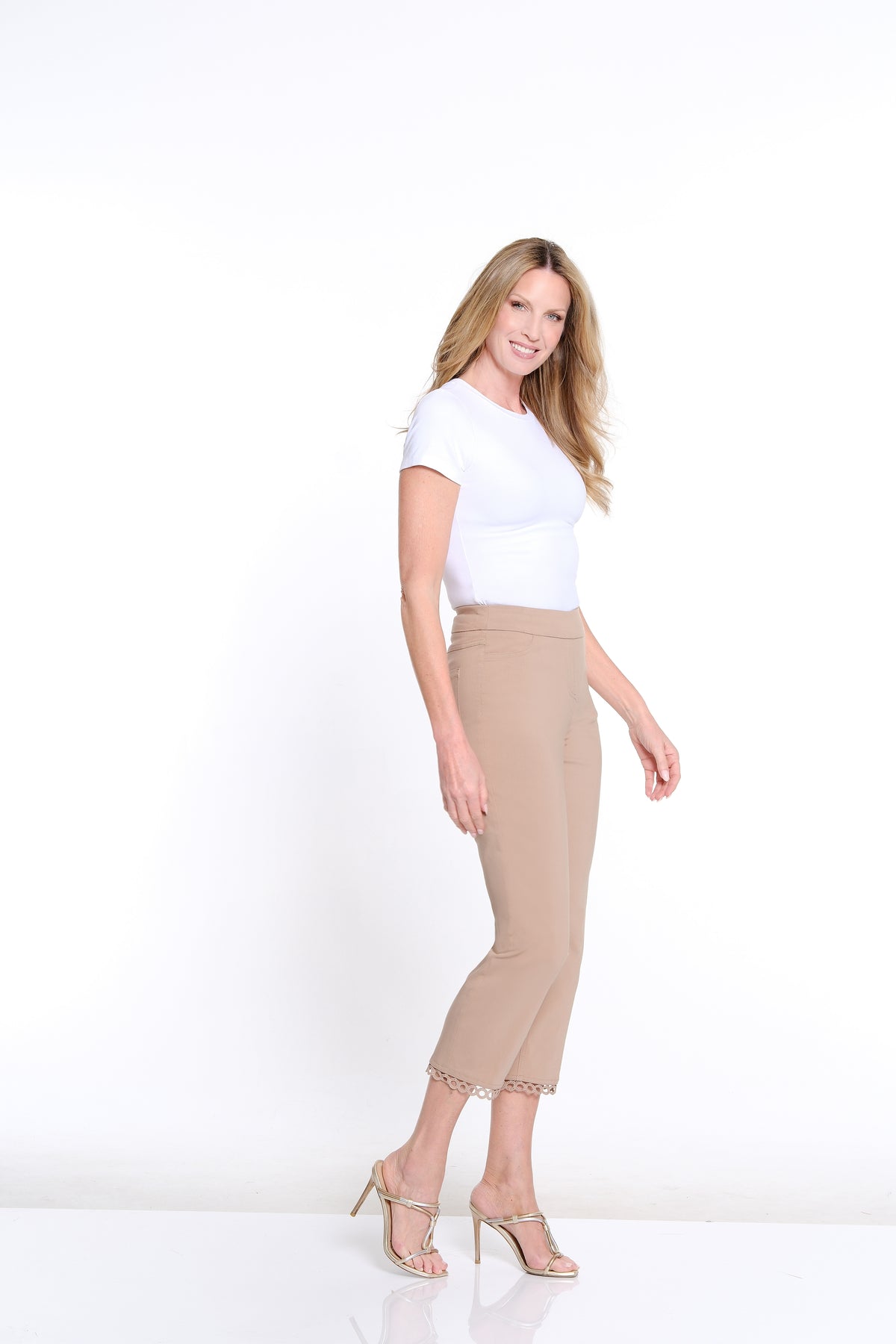 Solid Twill Crop Pant with Lace Hem - Taupe